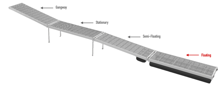 Dam Docks Gangway sections include aluminum frames and drop-in Natural Cedar or...