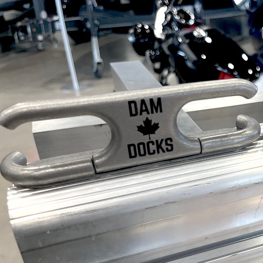 Full range of dock hardware including hinges, bumpers, wheel sets, fixed or adjustable posts and foot plates. Dam Docks floating dock hardware is all made in Canada and compatible with our T-Slot aluminum frame rail system.